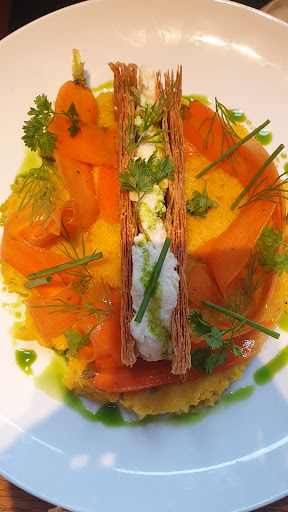 Read moreDelicious vegetarian restaurant! The food was very good, different than the average vegetarian dishes in Amsterdam cafés. Cozy, cute, quiet, relaxed, great daytime restaurant to have food at a "restaurant" pace. We felt relaxed having our 2.5 course lunch (too full for dessert). Service was super friendly, and knew the menu well. Good wine selection and a lovely cat (Tom) that visits from a neighbor's. Dog friendly as well. They change the menu sort of quarterly I think, will go back soon to try more of current menu as well. 4 starts as didn't try...