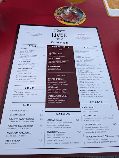 For the Zalm Tataki, the ink flavor was overwhelmingly strong, which unfortunately upset my friend's stomach. Regarding the Ijverbowl, the dominance of Shanghai paksoi overshadowed the other flavors, detracting from the overall taste experience. Adding photos to your website and menu might help guests make more informed choices, as we would have better understood what to expect from each dish.
