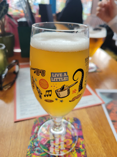 Read moreGood service, good beer, good food! After walking around the NDSM neighborhood and art ateliers we ended up having beers and dinner at this place. We had a very pleasant visit, service was really attentive and fast, good selection of beers on tap and the highlight was the food! Appetizers were pretty good (biterballen plus roasted cauliflower) and we also we went for the Chef's Menu: Sea bass as appetizer, Coque a la bière and Creme Brulee. The chicken was spectacular, we can come back any time for that dish. Nice decor and 3 types of areas for sitting inside, covered "courtyard" and outdoors (the courtyard is really and outdoor area but inside the main warehouse). They are also kids friendly as we saw a lot of kids games on the "courtyard" tables as well as a small playing area. Presentation of the dishes was also pretty well done, something you will not expect...