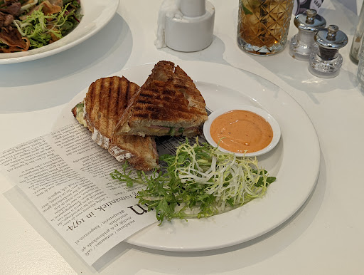 Salad of the Moment had a variety in it. Mostly green ingredients with bacon and an other meat. I skipped the bacon and green beans, but I won't take that into the scoring. What I missed a bit, however, is also some vinegar and olive oil, or also another sauce served with the salad. Such additions could bring this salad to a new level. Given the rather high price of the salad (some +60% more expensive than the sandwich), I would expect to receive a bit bigger portion (see the photos of both). Altogether, this is a 3-/5. Following the ingredient additions suggestion, together with a bit lower price could bring it to 4/5.