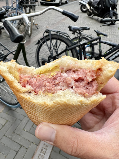 Read moreSo as I walking the streets of Amsterdam, I stumble upon this sandwich shop. Pastrami sandwich with spicy mustard and suarkraut, get the butter on the bread. They hand slice the meat and cheese by hand every time. 2 sandwiches and 2 drinks for only 8.50. The staff was warm, friendly and just having a great time making your food right in front of you. Value and AMAZING food. I will be back every time I visit...