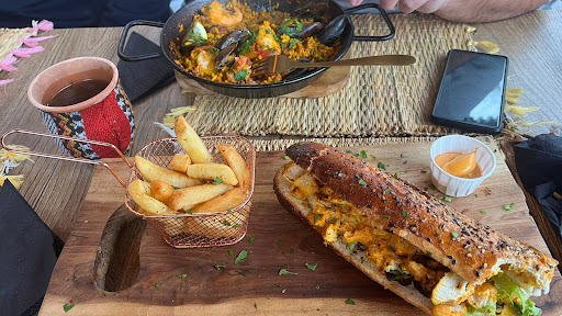 Waiter was super slow, i didnāt had my drink till everyone else already had their main dishes, first of all i ordered strawberry moctail when I received it it was so sweet that i had to send it back because it was simply not drinkable, my bf ordered water it was also forgoten till we had to remind them like 3x and the bottle was with big frozen ice inside, i apmost not drinkable, I recieved my dish when everyone was already finished with their main dishes and was waiting on me, I ordered paella mixta dela casa di josper, the meat was dry, the taste was bland and I didnāt like it overall, so does the burger that my bf had, the meat was not the best better go to Mac Donald , but at least everything was warm.