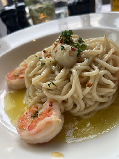 Read moreFirst of all, I arrived thirsty and ordered sparkling water. The moment they poured my glass, an insect decided to take a dive into my drink. Considering that a large bottle only serves about three glasses, one was now ruined. I informed the waiter, expecting a fresh bottle. But no—they simply changed the glass, as if that could erase the memory of the bug floating in it. I came to eat, not to chase pests. I let it slide and ordered pasta aglio e olio with shrimp and chili flakes. Big mistake. The spiciness was so extreme it obliterated any flavor, made my eyes water, and set my mouth on fire. I begged for milk or something to calm the burn, but their “solution” was to pour cream on top and return the same dish, now a greasy shadow of what it should have been.