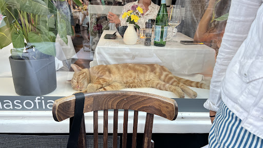 Read moreFriends of ours recommended this little gem of a restaurant and we made reservations well in advance of our trip to AMS. We were asked whether we wanted to be seated inside or outside and we chose outdoors. Be aware they allow smoking outside so choose accordingly. The food was excellent and the service was attentive. We shared a bottle of wine and a bottle of Pelligrino Sparkling water and ordered pasta dishes as our main courses. You could tell the pasta was homemade. We had the eggplant Parmesan as an app and it was also very good. The prices were very reasonable! We did not opt for dessert there since there was a gelato shop across the street from the restaurant that had a long line. We figured with that line the gelato would be pretty good so did that instead. We’d definitely return to La Trattoria Di Donna Sophia if we return to AMS. The most charming part was the cat lounging on the windowsill inside the restaurant which was right...