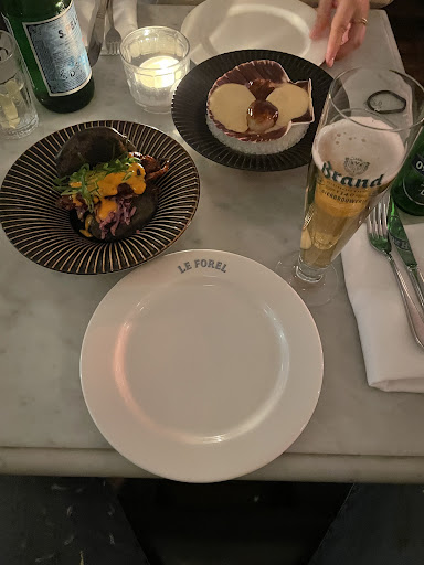 Our dinner at Le Forel was not as good as we expected it to be. The food was of medium standard and the service was wobbly. Now I understand that this place has just had their opening.. but from my understanding you should start off as strong as you can to leave a good impression. Sadly this did not happen. Concerning the tasting menu: The shrimp croquette was one that you could find on any menu, very good | yet basic. The ceviche had nice flavours but the presentation of it looked rather messy. The lobster bisque was good, I have nothing else to say about that. But then we got served an overcooked cote de boeuf and a small piece of lobster that had an after taste of chlorine. And while we were eating our main course the manager/owner of the restaurant sat on a table next to us and started smoking a cigarette of which all the smoke blew into our faces. And the same happened during the dessert (which was a tough dry piece of chocolate fudge pie). Rather unfortunate and unprofessional. Steering clear from this...
