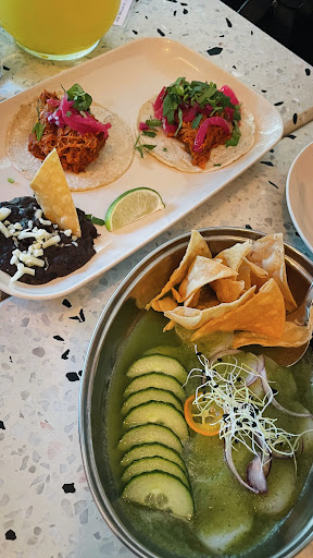 Read moreConfused about all the great reviews... The place was only half full but the acoustics are terrible. You literally can't have a conversation or order without shouting. We received a shot glass filled with five chips and a thimble full of sauce. The portion size for the 12⬠plates is laughably minuscule: between an amuse bouche and a tiny starter in size. The (miniature) mole, which I order whenever I see it, was musty and unfortunately had an ingredient which was rancid. The tiny tacos had a side of beans that was more of an artistic brush stroke than even a single spoonful. The margaritas were okay but very lemony instead of lime and unfortunately poured from a big pre-mix instead of freshly made.