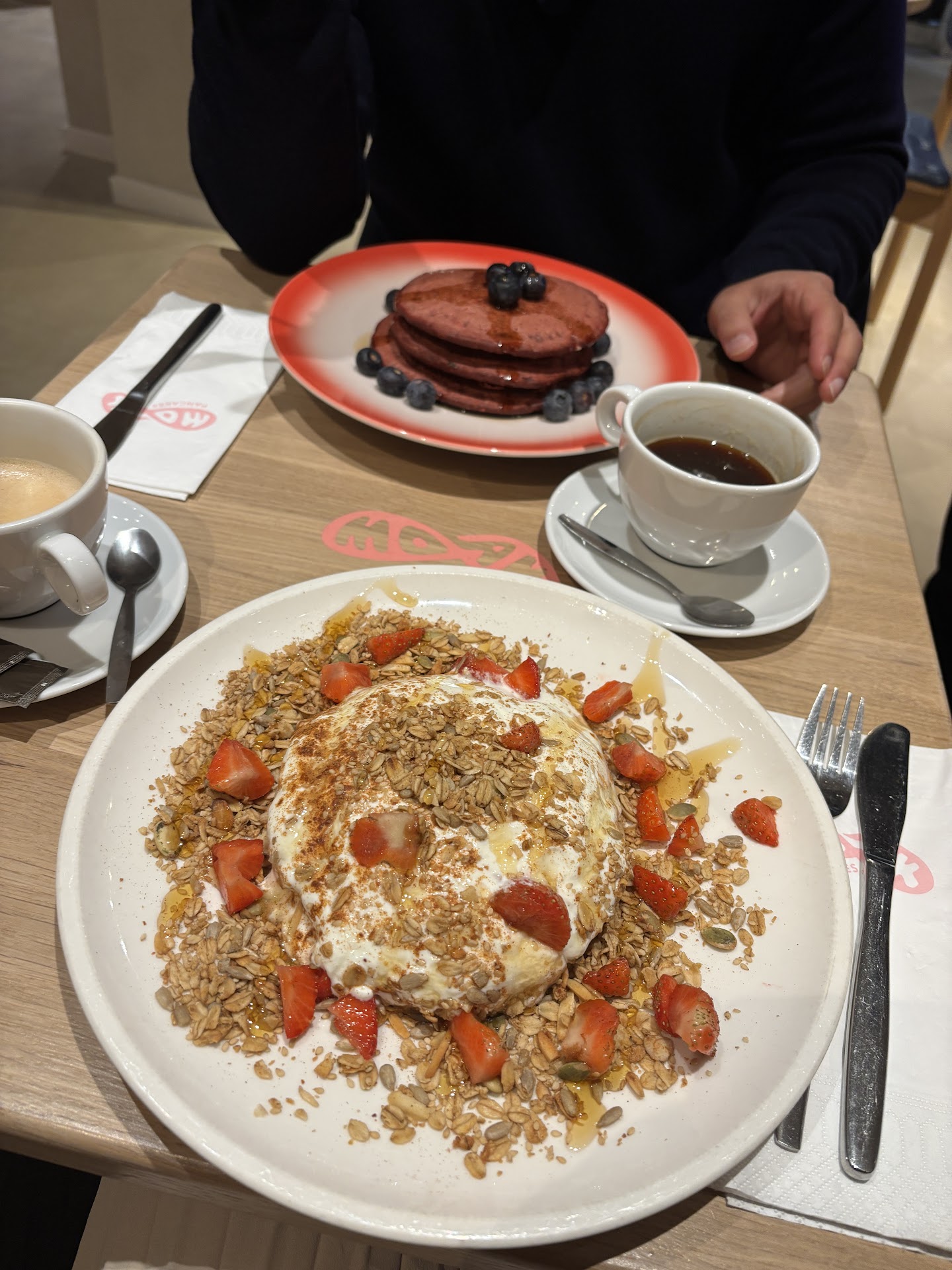 And then the pancakes came. I ordered the G.O.O.D. Morning and my sidekick ordered the Blue Magic Vegan (once again: donāt judge him, heās American). And thatās where Woke at MOAK turned into Moan at Moak. We we moakning over the fluffy goodness served to us. Those pancakes are something elseā¦