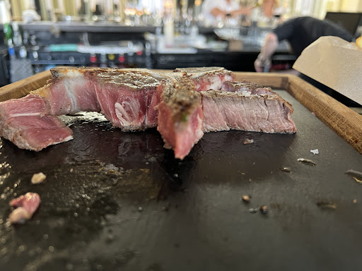 We’ve been to this place a couple of times before, but the experience tonight was so awful that I have to write a review. First of all, we had a bar reservation at 18:45, and when we arrived they placed us next to 4 other people, while the whole bar was empty. It was so tight that I was almost shoulder to shoulder with the person next to me. I asked the receptionist if they can sit us somewhere else and she said no, it is fully booked and those places are for larger groups, but that didn’t seem to be the case, as we saw that other people in groups of 1 or 2 were being placed on the bar, not squeezed to each other, rather with some distance, so I was wondering what is the sitting policy here. Then we ordered a Mr Porter for two to share. After some time, the side dishes came but the steak didn’t come. Then after some minutes, some lady appeared with a smaller steak. I said is this a Mr Porter? She said no, this is a Mrs. Porter and is smaller, your order got mixed up. I said but we didn’t want a Mrs. porter. She didn’t even say sorry and was arguing with me that Mr Porter is big, like for 3 people. I asked her to take everything back and bring the correct order. She took the order back and said it takes some time until the correct one comes again. Then to our surprise, in 5 minutes the right order appeared but it seemed not to be warm enough, so I don’t know really what happened in the kitchen. Did they just returned the same sides? And the meat was supposed to be medium cooked, but as you can see in the photo, the right side was well-done and left side almost raw. This is the absolute highest price you pay in Amsterdam for steak and this quality is not acceptable. The gentleman who was us drinks had good manners and several times apologized and also offered us a round of drinks on the house, but overall, we are not coming back to this place.