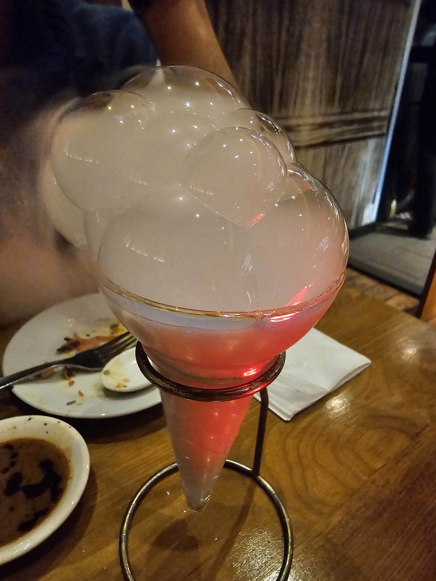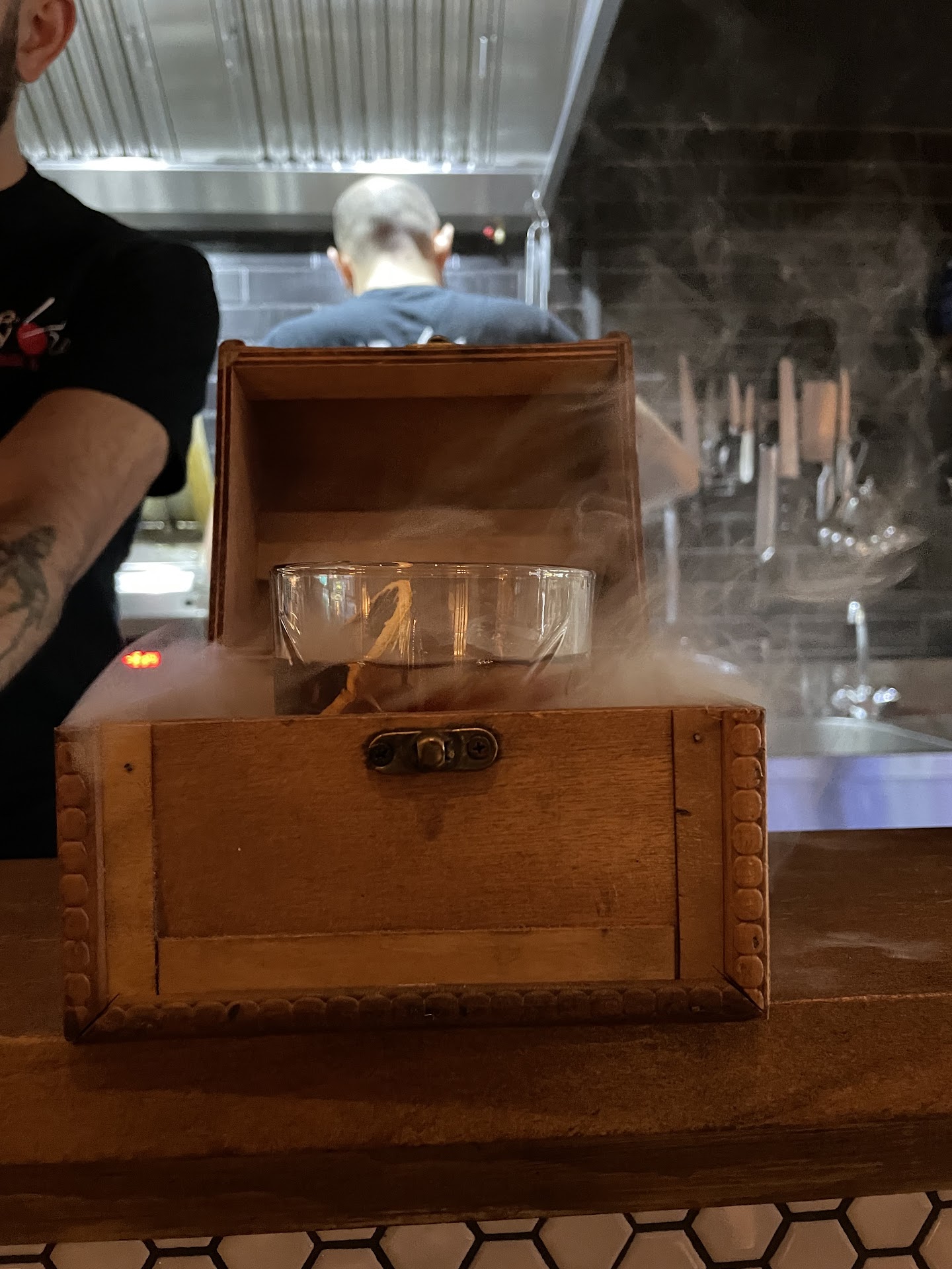 Food and cocktails are not very good. They advertise big with being “the only gyoza bar in the world”, but it really doesn’t mean anything for the quality at least. The gyoza dough is quite thick and tends to make them drier. It tastes more like pasta, than nice authentic fatty gyoza. The filling is often a bit blant/dry too and lacks balanced flavours. The descriptions of everything sound mouth-watering, but the execution really disappoints. The kimchi chicken gyozas with curry foam were the most enjoyable though. And the fried chicken with kewpie mayo was delicious. I’m sorry, but the cocktails are really not tasty. They prioritize making cool moves, adding smoke and fire and cute glasses, but they don’t measure any of the ingredients. The flavour balance is completely off and the passion fruit smoke that they let you smell with one of the drinks reeks of bad shisha.. Maybe my expectations were too high, but I’d only come back for the atmosphere and some fried chicken as...