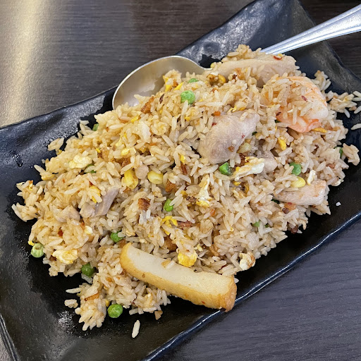 The tasty rice is served with poached chicken with soy sauce, topped with fried garlic. The ginger sauce, garlicky chili sauce and soup typically seen with this dish are missing, and the otherwise decent chicken has a generous sprinkling of pepper over the top… not quite sure why?