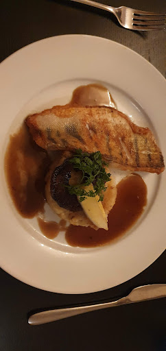 Seasonal menus with a focus on fish & seafood in a cozy canalside restaurant hung with chandeliers.