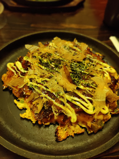 Read moreAbsolutely do not go to this restaurant. I was very excited to find a place that specialised in Okonomiyaki, as I loved it when I was in Japan and wanted to try it again. Firstly, the place STINKS. It's a disgusting smell from the toilet that fills the whole place, like old pee. I honestly don't know why we didn't walk out straight away, but we decided to give it a go. We order a coke and a calpis, both come flat and warm. Whatever. My husband orders karaage to start, while we both wait for our pancakes to cook. After a long time, a plate of something black and greasy gets placed in front of us. This is NOT karaage. We both take one bite and it's the worst thing I've ever put into my mouth. God knows when the oil was last changed. I'm ashamed to say that we fled the restaurant when the owner was in the stock room. Neither of us was willing to wait and see what our pancakes came out like in that stinky, filthy restaurant. Looking at reviews later, it seems this was a very good place until the new owner took over, so don't trust the seemingly high star reviews, as they were for years ago. Avoid...