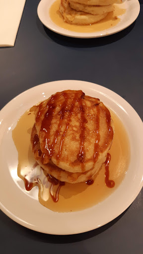 I had the American Pancake with maple syrup. Generous amount of maple syrup. The pancakes were fresh but taste wise was average in terms of price-performance-ratio. There was an overwhelming egg taste for mine. I've had better pancakes elsewhere. I was surprised they didn't offer tap water which is absurd as almost all places in NL offers it. The clog keychain with the receipt is a nice gesture for tourist (for example in the pancake amsterdam in city centre area) but I prefer to get tap water instead (the demographics of Zuidas is totally different).