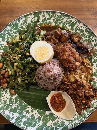 Queue was stowed out the door when we showed up around 1830 and didnāt subside even after we left around 1845. Got the Paon Bali which was some lovely fragrant rice, and then a delicious medley of all the different curries, veggies and deep fried goodness (9 different items if I remember correctly).