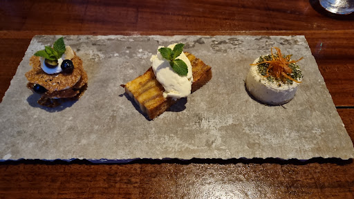I ordered the Goat cheese cheesecake and found it surprisingly good. The rosemary taste goes well with the heavy goat milk taste. The cracked pepper was however not tasted clearly.