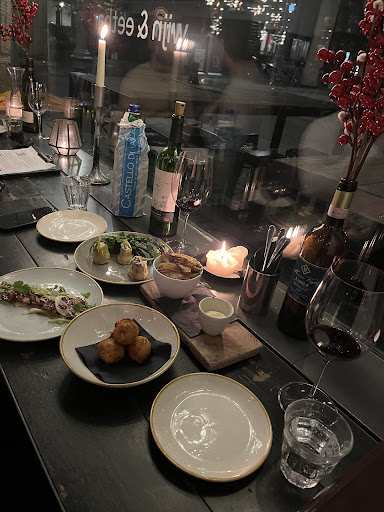 Read moreWent there on a Saturday night, you better book before as the place was fully booked. Because of many people, it was very loud inside and we were given two stools next to the entrance.... This already had a bad impact on the experience. The waiter was fast to help us out but not what I would call friendly. Ordered wine from Puglia which was very good but the waiters take too much care to give you exactly the proportion of wine, does not give a good impression. Food is not bad but, in my opinion, not worth its price. Overall, we had two other glasses of wine which were good too but, the place is not gezellig. Prices are high and staff is correct but not what is call friendly. I would not go there again or only for a glass of wine, not for a...