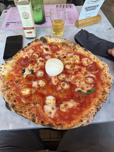 Food: The pizza Marinara Piccante was very nice, but I cannot recommend the Verdure. The vegetables were not grilled as advertised, but sautéed with a bit of oil, so they were pretty soggy and lacking in flavour. Burrata was also nice but too expensive for what you get. Tiramisu is pretty good. If it wasn't for the service, I would say it's a pretty average pizza place.