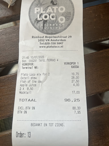 Read morePlato Loco 🇨🇼🇯🇲 – Caribbean Comfort in Amsterdam 🇳🇱 This spot is a whole vibe! If you're in Amsterdam and craving authentic Caribbean flavor, do yourself a favor and make a reservation — the place fills up fast. We were lucky enough to score a last-minute walk-in for two! We ordered the jerk chicken, oxtail stew, and sweet plantains — every bite was full of rich, bold flavor and cooked to perfection. The jerk had just the right kick, and the oxtail was fall-off-the-bone tender. To end on a sweet note, we shared the lemon meringue dessert — light, tangy, and delicious. A perfect finish to an unforgettable meal. Highly recommend this hidden gem if you're looking to taste the Caribbean in Amsterdam.
