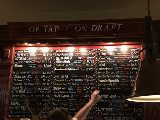 Read moreWe visited this place on Monday evening, just after getting to hotel. It's pretty easy to find, but rather than a restaurant, it's a bar. The beer menu is in Dutch and also English and divided into beers from tap and from bottles. And every of those two sections is divided even more, into normal, sweet and bitter beers. It's impossible to try them all! The beers we tried were delicious, really. The waiter even recommended us a beer, since we were bit baffled by huge ammount of the beers in the menu. They also offer few beer snacks, which are divided into nuts and chips (crisps), sausages and cheese. We went for tasting board where were 4 different kinds of cheese and garlic black pepper sausage. It came served with pickled onion (sweet) and mustard with whole mustard seeds. The prices are not that high, each beer ranges from 4Euro to 7 Euro for strong specials. The staff speaks perfect English, able to explain about the beer in detail. I can recommend visiting this place, if you're into beer. But this is not the place to get drunk...