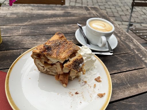 (Iâm a solo, American, male tourist) I walk in and a young, sleepy looking guy greets me. I say âIâll have apple pie with whipped cream and a cappuccinoâ he says âokay sit anywhere and iâll bring it to youâ i say âokay, outside?â He says âyes, anywhere.â