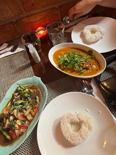 We ordered a chicken massaman curry, a chicken pad thai and stir fry shrimp with basil leaves. We had satays for appetizers which were amazing; the sauces were most definitely made in the kitchen, although the chicken was hard to remove from the skewers. The food arrived and was served quickly, and the flavours were deep and authentic to our Chinese palettes. The flavour profiles remained diverse, and it tasted rich and creamy whilst not being too much. The spice level was on the more mild side, but still tasted hot and we thought it was just right.
