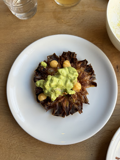 The menu, though promising, fell short of expectations. Repetitive combinations of nuts on raw vegetables and an abundance of artichoke became a noticeable pattern. The pesto pasta, in particular, left much to be desired, resembling a simple home-cooked student meal. The disappointment was further compounded by the prices charged for these seemingly small and unimpressive dishes which we were splitting.