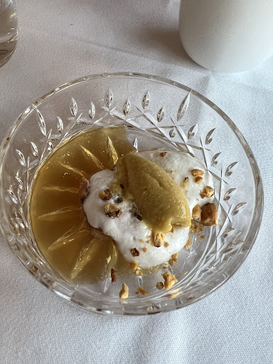 We also encountered issues with the service: when we requested wine, the waitress was unable to make recommendations, promising the sommelier would assist. Unfortunately, the sommelier never appeared, and we were left waiting until we received a suggestion that did not meet our tastes. This happened twice during our meal, severely disrupting our experience. Consequently, we ended up eating some dishes without an appropriate wine pairing. It's worth noting that in my experience with Michelin-starred restaurants, there is typically a wine pairing menu available alongside the tasting menu.