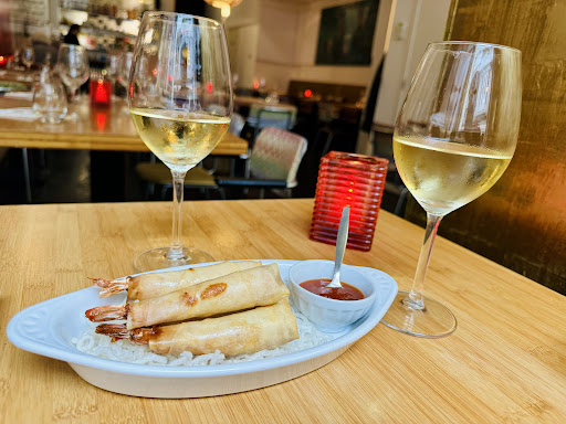 Upon arriving, we were greeted by an employee who instructed us that we could select our own seating (the restaurant was fairly empty at the time). We placed orders for the following: Two glasses of wine, spring rolls, Pad Prik Ging (my wife), and the Pad Bai Kraprao (myself). Roughly 15 minutes later our food arrived looking real delicious (we would later discover that it lived up to its appearance). My wife and I were so pleased with our meals that we were intentionally eating slow as not to finish it too quickly (I’m guilty of quickly devouring delicious food). By the way, the two chili peppers spice rating is pretty accurate…make sure that you have a glass of water nearby.