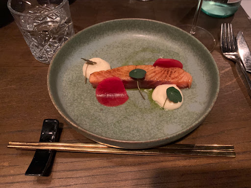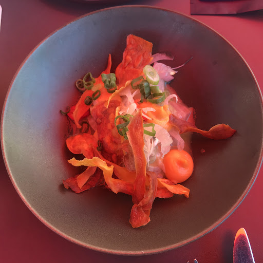 Read moreAs we entered it took a while before we could order a drink. Then finally someone came with the menu and instead of handing it to us began some ludicrous story about how each six months the cook goed out into to the world for inspiration. Sure. Only im not interested cause i want a drink and order food. He then proceeded to say that the theme this time round was "street food". Later in it became obvious this place is some nouvelle cuisine wannabe with 5 small bites passing for a 5 course dinner and you leaving the place craving for something to eat. I ordered a drink " champaign beer" and we ordered food. Food came. But no drink. I asked. They said it was on its way. Then we ordered a bottle of wine. The wine was good. It was a good Italian wine. But it arrived before my starter drink ever arrived and so I cancelled the starter drink that i had been curious for. The first dish was a combination of some green cream (avocado maybe) some sweet jelly and white stuff that had a bunch of parmesan in it. That is a ridiculous combination. The tastes just dont go together. Next up was fish. Mackerel with onions and a sauce. That was really good. Then they brought the drink I had cancelled cause of them bringing the wine first. Then came a fairly tasteless piece of meat (it was lacking salt) and after that a reasonable desert. So we had the five courses. But its all tiny and small like in nouvelle cuisine so you're left hungry. It has absolutely nothing to do with the professed theme of Asian streetfood. The place is nice and the service friendly. But its pricey and the food isnt up to par. Hence no five stars. If you want to chat with a few bites and good drinks its fine For a dinner there is an excellent yemenite restaurant with rude service...