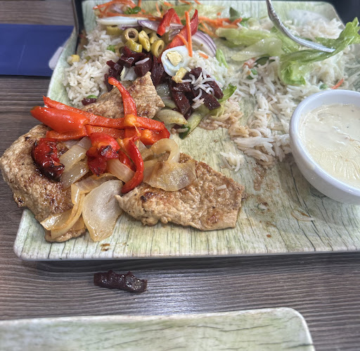 BBQ kipmix gril: Een variatie van 3x dezelfde gekruide kip. 1x op een spies, 1x in blokjes op het bord en 1x als filet stukje VAN DE BAKPLAAT. Wat is hier bbq aan? Zelfs geen bbq saus overheen. Vervolgens een gortdroge zwart krokante merguez wat geen kip was maar duidelijk rund. Tip; kaddour zit een deur verderop. De volgens de kaart aanwezige "kipsate" was niet op het bord. Daar op gewezen en toen kreeg ik een waterige drap lichtbruine saus die wat echt schaamteloos nog poeder/korrelig slecht geroerd met heet water was. Die satesaus was onbeschijvelijk vies. De keuze rijst, aardappelschijfje of patat is er wel op de kaart maar niet in de praktijk. Er is maar 1 keuze; patat.