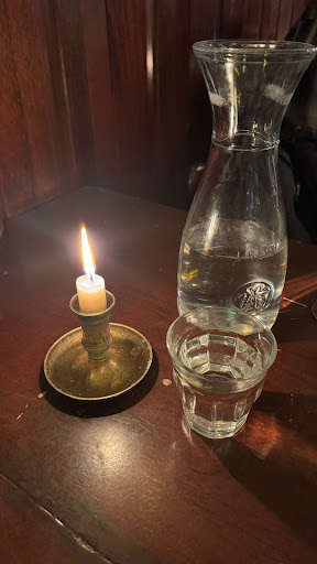 Deze avond viel het echter behoorlijk tegen. Dat lag niet aan rasover Stéphan die voor ons de avond heeft gered. Sympathiek in deze tijden: het kraanwater is gratis, je hoeft géén aanbetaling te doen om te reserveren en ook de olijfjes met brood staan niet op de rekening. Daardoor voel je je direct welkom, ondanks dat je soms krap zit. We hadden nu het achterste tafeltje tegen de muur aan (linkerkant vanaf de straat gezien). Ergerlijk is dat gasten én personeel de deur naar de toiletten openlaten. Daardoor zit je soms op de tocht (in het najaar).