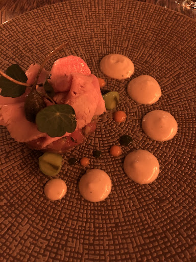 For the most part, we had a great meal and experience. We were greeted promptly, the waitress took our jackets, and our table was ready for us immediately. We were quickly waited on, they brought a lovely amuse bouche, and we enjoyed the start of our meal. We ordered a Negroni and Zaza’s mule. Negroni was great, mule was decent. The Turkish bread and aioli was fresh and light. We ordered the pea and leek tartlet and the “thinly sliced” cured beef to start. The tartlet was great. The cured beef was not. It could be given the accompaniments, but our piece was quite chewy. It was the worst part of our meal, and when we brought it up to our waitress she apologized and said she would speak with the chef. A more mature waitress came out, but she had quite a condescending attitude, assuring us as if we were in preschool that we didn’t know what we were ordering and this is how this was supposed to be. No apology, no offer for anything else, and the dish that we barely touched was taken away and still charged to our final bill. £14.50 for nothing. This was the worst part of our dinner. We followed this with the half portion of ravioli, to die for, and the veal, which was cooked perfectly and was nicely accompanied by the parsnip purée. We finished with the bread pudding, which was perfect. All in all, we had a nice time with our own company and the dishes and service that were good, but that one minor part of our meal really didn’t match the rest of the experience. Disappointing for a place that was nailing it on...