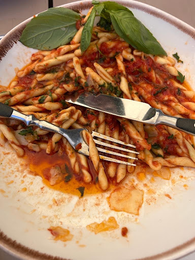 The menu was delivered. I perused and made my choice. Pappardelle beef ragu. House red.