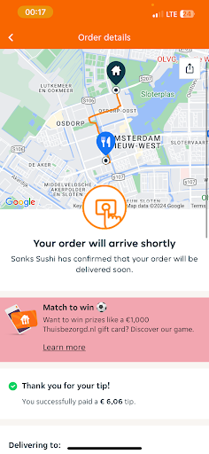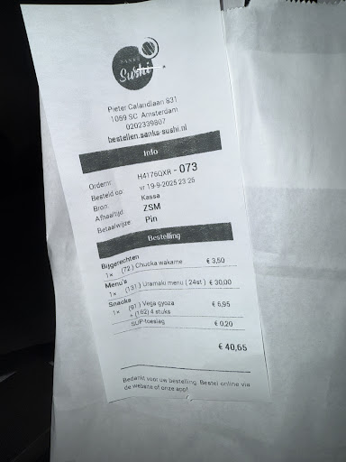 If I could give this place ZERO stars I would. I ordered Sushi at 22:31pm on Friday, June 14th from your Sanks Sushi with the Thuisbezord app and I still haven't received my order. I have been calling the restaurant multiple times since 11pm and no answer. My order cost a total of 40.40 Euros and a 6.06 euro tip to the delivery driver and I haven't received my food order at all and now the time is 12:25am on Saturday morning June 15th.