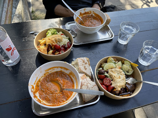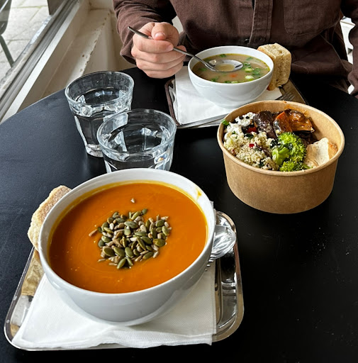 Read moreWhen traveling, managing one's diet can be challenging especially if reliant on restaurant meals. So finding Soup En Zo provided an opportunity for a refreshing reset. There is soup, yes, but there is also this very appealing salad bar composed of multiple mini dishes of interestingly prepared vegetables like sautéed aubergine, or a marinated raw fennel salad. It is easy to put together a "gourmet" combination of simple dishes and also easy if vegetarian or vegan is the style. Plenty of options. We were appreciative of having this option at the end of a 3 week visit to Europe! (Also there is a good coffee/espresso...