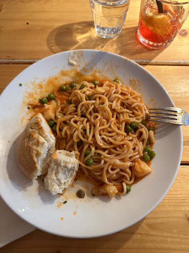 Read moreUnique in its simplicity. A place to eat and socialize. No all night fine dining with table cloths. Small menu with tasteful dishes. We had bruschetta as appetizer which I can prepare better (bread could be softer, tomatoes need some additional taste and mushrooms lack truffle taste). As a main we had gnocchi with salmon and spaghetti with seafood (spaghetti vongole). Both very tasteful and sufficient size. Tiramisu to share (large portion) and a scroppino to top it off. Unfortunately no ristretto available (an Italian restaurant without ristretto?). Friendly service, relaxed atmosphere, good price quality. We certainly...