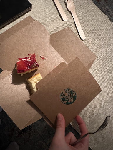 We bought two cheesecakes to enjoy at home. When I took the first bite, I couldnât quite figure out what was wrong, but by the second bite I realized it smelled and tasted like freezer burn. It had absorbed the odor of every item in the freezer, or maybe it had been left uncovered in the fridge for days. The strawberry jelly topping had such a terrible smell itâs hard to even describe. Absolutely unacceptable! The texture and taste were awful, and it upset my stomach immediately. I would never expect this kind of quality from a place like Starbucks. Whether it was spoiled, expired, or just staleit should never have been sold to a customer!!!!