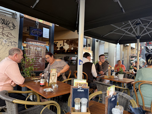 Read moreWaar moet ik in hemelsnaam beginnen ze zijn namelijk die ene ster niet waardig. Ik begin maar bij het eten. De soep vooraf smaakte niet verkeerd, maar dit kwam voornamelijk omdat deze in een fabriek geproduceerd is en niet in hun eigen keuken. Er was jammer genoeg niet eens de moeite genomen om de verdikte klonten er uit te roeren. Als hoofdgerecht had mijn vriendin kip die wel redelijk smaakte maar die wel erg dun gesneden was(waarschijnlijk voor een snelle bereiding) maar mijn spareribs (voorverpakte supermarkt kwaliteit) waren walgelijk. Ze waren zo gortdroog dat ik het vlees amper van het bot kreeg en er zat een dikke haar op het vlees. Er werd nadat ik melding had gemaakt wel netjes een nieuwe gebracht maar ook deze was gortdroog en niet te eten. Ook de zeer korte tijd waarin deze spareribs bereid werden bevestigd dat het om kant-en-klare producten gaat die nog even gauw in de oven of magnetron gedaan worden. Dan de hygiene in het restaurant; zeer zorgwekkend. Mijn soep werd geserveerd met een bistro-lepel waaraan ik door de afgebladderde lak kon zien dat hij in de vaatwasser ging. Lekker zo'n bron van bacteriën bij je eten. De wc's waren om te janken; op een opgepoetste bril na zag de rest eruit alsof het maanden, al dan niet jaren, niet schoongemaakt is geweest. Een vluchtige blik in de keuken gaf verder ook geen geruststellende indruk. En als laatste de presentatie; waarom worden er zakjes saus in roze plastic bekertjes geserveerd? Wat is er mis met een dot mayonaise geserveerd op een mooi klein schaaltje? Het is toch geen McDonald's! De borden zijn armzalig met een hoopje droge sla en op andere tafels werd het water geserveerd in plastic flessen. Acheraf had ik ook liever water besteld want de prikloze Ijsthee en de goedkope slobberwijn waren een teleurstelling, zeker omdat de prijzen iets heel anders doen verwachten! De bediening is een lachertje, ze hebben totaal geen ervaring in de horeca. Borden van tafels proberen te halen terwijl andere gasten aan te tafel nog niet uitgegeten zijn, serveren en afdekken zonder dienblad en ze lopen zonder schort in hun dagelijkse kloffie rond.