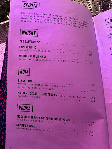 Read moreSuper Lyan is hands down one of the best cocktail bars in Amsterdam! The first thing that grabs you? The neon-purple glow wrapping around the cocktail station, like a little island where all the magic happens. You can sip at the bar or sink into the couches while nibbling on small bites. The cocktail list is anything but ordinary. Every drink is carefully crafted, with a story to tell, flip through the menu or ask the incredibly skilled bartenders for the backstory. A great way to start? The Daiquiri with William George rum, a fragrant Amsterdam-born spirit that’s crisp and refreshing. Want to go bolder? Try the North Sea Boulevardier, made with Toki whisky, invasive plants, and cordyceps, served with an oyster-extract pearl that bursts in your mouth before the cocktail smooths it all out. Prices lean toward the higher side, but totally fair for the level of craftsmanship. The bartenders are not only masters of their art but also super friendly and happy to guide you. If you’re looking for cocktails that push boundaries while staying seriously drinkable, this is the place!