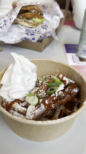 Also the party fries were supposed to have 5 types of fries? We could only identify 3 (normal, sweet and waffle). This place has a lot of potential but it felt a bit messy in organisation yet. (Out of cola zero, no mayo served, fries missing). So it’s fair to give some slack since it just opened. If they step up their game, this can be a real gem. I would still recommend to check...