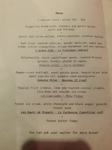 For the price point, we were expecting refined, memorable flavors. Instead, most dishes leaned heavily on salt, without much nuance or balance. Even the dessert was oddly more salty than sweet. The wine pairing was also confusing, with choices that didn’t really complement the food. For example, serving a super sour wine right after a sweet dessert wine, which clashed instead of enhancing the experience.