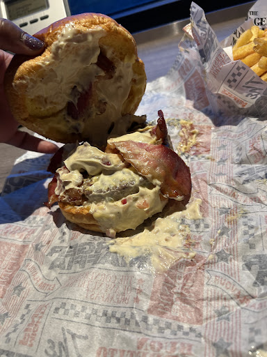 Here’s the breakdown: (Southern style chicken, with pickled coleslaw, sticky Asian sauce, sriracha Mayo, & lettuce in a brushed brioche bun)— this is how this “talk of the town” restaurant described the sandwich!