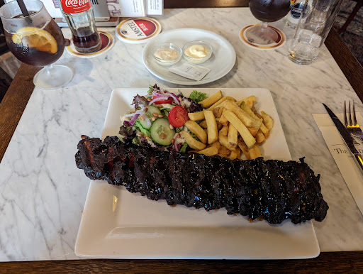 Regarding the ribs themselves, they look good. The taste is all right. I found them harder than expected to cut, and overall they were a bit too bony for my taste. The portion side is fair, as in 'just enough', rather than having just a bit extra. That perception could be individual. Overall, I would give the food 3/5 for quality. However, let's look at the pricing as well. These ribs are a bit on the expensive side, which makes it relatively poor value for money overall. Thus 2/5 here. Things could be different with other servings from the menu.