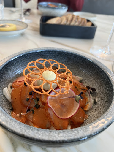 Read moreIt is wonderful to have such a high end vegetarian experience (they also have seafood and meat options if desired). The food was artfully arranged with an interesting and creative combination of flavors making it a feast for both the eyes and stomach. Portion size was perfect for a tasting menu. As a side note I must say I was very impressed with the ability of the staff to describe the ingredients in English. Of course we are spoiled that everyone here has a basic command of English, but it is something else to be able to explain all the ingredients and preparations for so many small but complex...