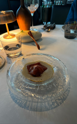 This restaurant is absolutely perfect for a special celebration meal. We chose both the meat and vegetarian tasting menus so we could experience the full range of flavours, and neither disappointed. Each course offered something unique, with creative combinations that kept us pleasantly surprised throughout the evening. The wine pairings were thoughtfully chosen and really enhanced the dishes – you could tell there had been care and attention put into balancing everything beautifully.