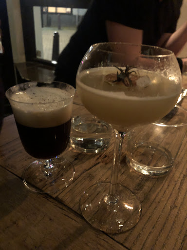 Read moreAfter being there the second time I feel I don’t really get the concept of this bar. You pay for the water and nuts that get placed in front of you without being asked, maybe I’m being picky but personally I liked to be informed when I pay for a side water or a a small snack that would go with a cocktail in other places. When asking about a drink they served a few weeks ago we got a weird uninterested answer. Usually I would expect someone who is working in a bar like that to be passionate or willing to have a conversation about a drink. The Ambience is cozy and I’m a fan of how the bottles and accessories are arranged- so many details to explore. I also love the Glasware and the design of the drink menu. The rest of the room is held simple and you have space like projections on the ceiling which collided a bit with the style of the bar area - but if you are looking for a casual Cocktailbar that's well located...