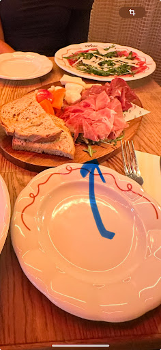 We waited over an hour before our starters arrived (burrata, carpaccio, and a cold cuts & cheese platter). The cheese on the platter lacked flavor — mostly mozzarella and a very mild cheese, far from the bold Italian tastes one would expect (Grana, Parmesan, Gorgonzola, Pecorino). The charcuterie was served on a mountain of salad, likely to make the portion seem larger, and came with some crunchy vegetables that didn’t add much.