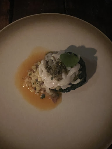 We found the courses to be underwhelming, often lacking depth or complexity. the first was a cured fish dish, the second borscht gazpacho. The only real winner was the main meat dish of the evening. A saving grace (and again with a very complementary wine). The dessert on the other hand really could have scaled it back. It was some sort of deconstructed cake accompanied by a mouse that was basically just your grandfathers strongest port. Not my thing - and we all left that behind on our plates.