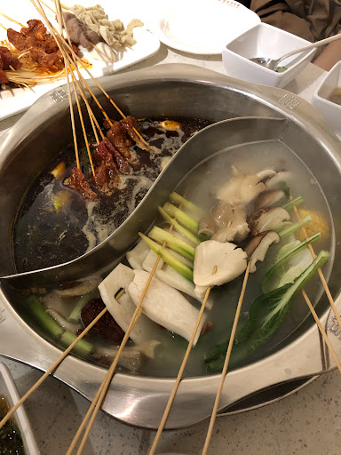 The "chuan" in the name indicate the sticks in which many of the meats and vegetables get skewered onto, they thread each ingredient onto a long toothpick stick, very reminiscent of those fishball stalls in Japan and Korea. The meat ones are seasoned almost like Mongolian BBQ, except you dunk them into the broth instead.