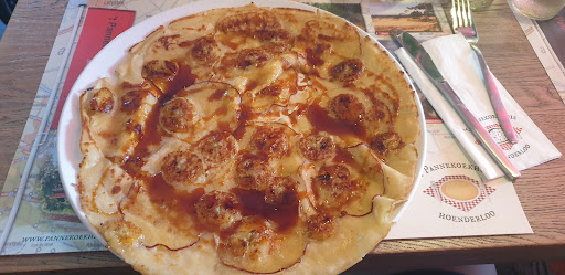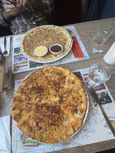 Read moreWat hadden wij er zin in! Na een lange (2 uur) autorit een heerlijke pannekoek scoren! Mijn vrouw bestelde een appel rozijn pannekoek. Ik nam een van alles wat pannekoek. Er was heel veel keuze en schappelijke prijzen. Toen onze bestelling klaar was leek mijn pannekoek wel een pizza. Maar hij was prima. Mijn vrouw echter had pech: de rozijnen waren hard en niet eerst gewelt. Hij was flinterdun en de appel ook: flinterdunne schijfjes waar je doorheen kon kijken. Mijn vrouw vond hem niet te eten. Dus riepen we de serveerster erbij. Uitgelegd en dat de pannekoek terugmoest. Mijn vrouw was er klaar mee en wilde geen andere bestellen. Dat werd ook niet aangeboden. Toen kregen we de rekening. 30 euro voor 1 pannekoek en 1 biertje en 1 cola?